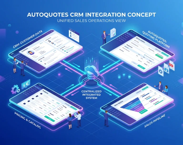 AutoQuotes CRM Integration: Fix Sales & Operations Gaps and Close Deals Faster Chintan Prajapati February 17, 2026 7 min read IntroductionLet’s assume you are participating in a race and every runner, including you, has to stop and check the track.It’s annoying to you and the audience who are watching you, right?That’s how sales teams feel when AutoQuotes (AQ) and CRM systems don’t communicate with each other.In today’s advanced and fast-moving sales world, linking these systems isn’t just a nice-to-have. It’s a must-have.Here’s how integrating AutoQuotes (AQ) with your CRM can boost your sales operations and make life easier for your sales team.Quick Summary: What AutoQuotes CRM Integration SolvesAutoQuotes CRM integration helps businesses: Automate quote creation and approvals Sync customer, product, and pricing data Reduce manual errors and duplicate entries Improve visibility across sales and operations Speed up the quote-to-cash cycleWhy Sales & Operations Gaps Are Costing You RevenueMany businesses using AutoQuotes struggle with disconnected systems. Sales teams generate quotes, but operations teams often lack visibility — leading to delays, errors, and missed opportunities.Common challenges include: Manual data entry between systems Inconsistent pricing and product data Delayed approvals and revisions Lack of real-time trackingThese issues slow down deal cycles and directly impact revenue.Before vs After AutoQuotes CRM IntegrationWithout IntegrationWith IntegrationManual quoting processAutomated workflowsDisconnected systemsUnified data across systemsData duplicationFaster approvalsSlow approvalsReal-time visibilityWhy do you need for AutoQuotes and CRM Integration?Sales teams often struggle with multiple systems: Client quotes in one spot. Customer data in another Pricing is hidden somewhere else.This wastes the time of salespersons, causes mistakes, and makes them miss lead chances.When these systems don’t work together, your sales engine falters instead of flying.Did You Know?According to a report by McKinsey, sales reps spend about 28% of their time on admin tasks instead of selling. That’s more than 10 hours a week! Integration can give that time back.Entity Map between AQ and CRM systemHow AutoQuotes CRM Integration Improves Sales EfficiencyNow, let’s talk about the benefits: Projects and Opportunities Sync: When you start a project in AutoQuotes (AQ) and have it updated in your CRM right away, no manual input is needed! Customer Data Sync: To sync data, use the “upsert” operation to keep customer information current. It updates existing records or adds new ones if they’re not there. Real-Time Pricing Updates: Get rid of quoting prices that are out of date! Integration guarantees that your sales team is always aware of the most recent AutoQuotes data. Less Distractions, More Selling: The sales team can focus on closing deals rather than entering data or correcting mistakes Accurate Quotes = Happy Customers: Price mismatches are the biggest source of annoyance for customers, and integration removes them Data That Talks: Your CRM software turns into a dashboard of insights no more leaked data!For businesses looking to connect multiple systems, exploring CRM and ERP integration services can further enhance operational efficiency.Fun Fact:Companies with integrated systems are 33% more likely to report high customer satisfaction rates. That’s what happens when your data isn’t playing hide-and-seek!How AutoQuotes Enhances CRM FunctionalityWhen AutoQuotes and CRM work tandem, the system speaks. Smooth Data Flow: Projects, customer info, and pricing flow easily integrate between systems. Powerful Dashboards: From bids to finalized deals, sales teams have a comprehensive picture of the client experience. Real-Time Insights: All things stay the same and updated, including cost details, customer profiles, or opportunities.In many cases, AutoQuotes integration relies on custom API integration solutions to ensure seamless data exchange between systems.AutoQuotes Integration with Popular CRM SystemsBusinesses often integrate AutoQuotes with leading CRM platforms to improve efficiency and eliminate silos.Common integrations include: Salesforce – for advanced sales workflows and automation HubSpot CRM – for marketing and sales alignment Zoho CRM – for scalable SMB operations Microsoft Dynamics 365 – for unified business processesHow to Implement the Process for AutoQuotes CRM IntegrationLet’s start with a simpler way, Choose the Right CRM: Pick one that complements AQ well (think Salesforce, HubSpot, or Zoho). (FYI, AutoQuotes already has native Salesforce integration) Map the Data: Identify what information flows between AQ and your CRM. Test, Test, Test: Before going live, ensure all data is syncing as it should. Spot and fix any hiccups early.Use Cases of AutoQuotes CRM Integration Streamlined Quoting: A salesperson generates a quote in AQ. It’s instantly synced to the CRM, reducing follow-up time. Accurate Customer Data: When customer details are updated in the CRM, whether it’s contact information, pricing preferences, or communication history, these updates are automatically reflected in AQ. Improved Sales Forecasting: By syncing data from both platforms, they gain real-time insights into current and future opportunitiesChallenges and SolutionsLike any integration, AQ-CRM has its challenges.Challenge 1: Data silos make integration tricky.Solution: Work with a clear data mapping strategy to align fields between AQ and CRM.Challenge 2: Compatibility issues between platforms.Solution: To bridge these gaps, businesses can depend on middleware or custom APIs.Middleware acts as a connector between AQ and CRM, enabling them to communicate even if they weren’t originally designed to work together.Custom APIs can also be developed to create tailored solutions that allow for seamless data transfer and synchronization between the systems, ensurin